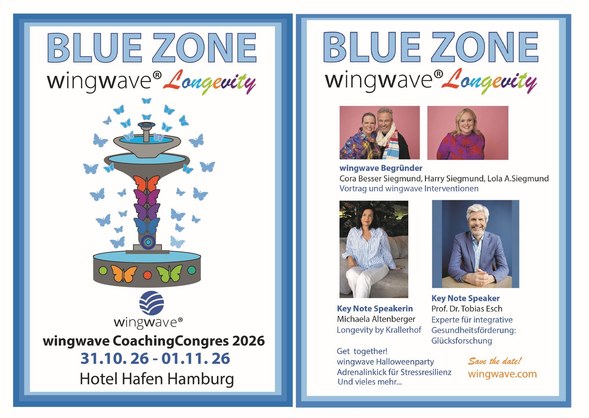 Der wingwave Congress 2026 BLUEZONE - Longevity verbindet neurowissenschaftliche Erkenntnisse, Coaching-Praxis und Zukunftsperspektiven für Gesundheit, Performance und Lebensqualität.